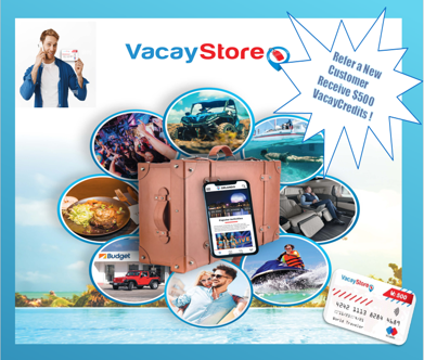 We are happy and excited to offer our satisfied customers a referral incentive program that rewards you for sending us business. You will receive rewards for referring neighbors, friends, family and anyone else that buys one of our canopy and or solar systems. The Vacation Store and Vacay Saver platform gives you access to anything you want to do fun! Its like having access to a full-service instant access Concierge on your phone! You can book Hotels, Rental cars, Activities, VIP Services, Live shows ,Events and Dinning at highly discounted wholesale rates with “VacayCredits” or “ VacayCash” you earn by referring us business. Both currencies can be used for everything on the platform. Most importantly, This is a system that is easily accessed and user-friendly. We are offering VCredits for every Referral that you send.