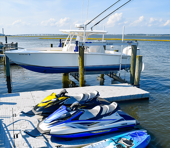 We have everything from custom swim platforms and fish cleaning tables, to underwater lights., dock boxes and more